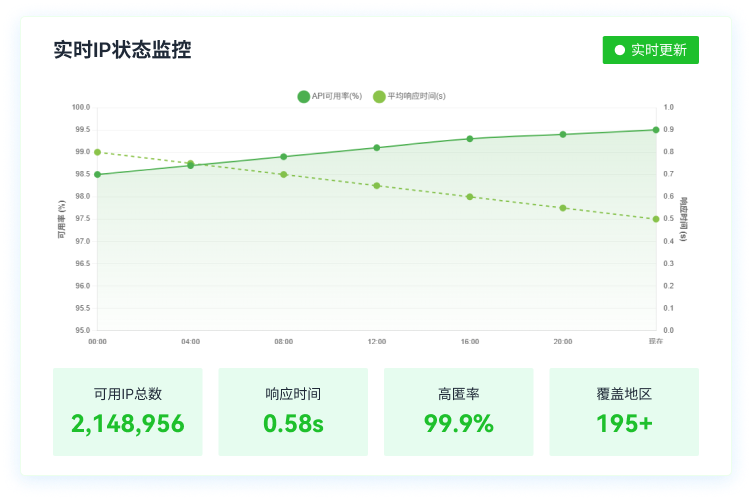 提供由高并发隧道架构与智能路由算法驱动的动态代理服务极致性能监控,承诺 >98% 的可用率与<200ms 的亚秒级响应